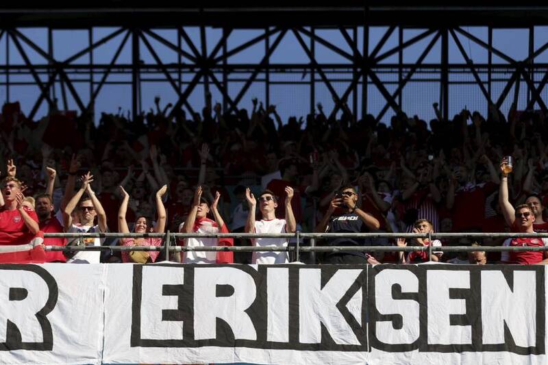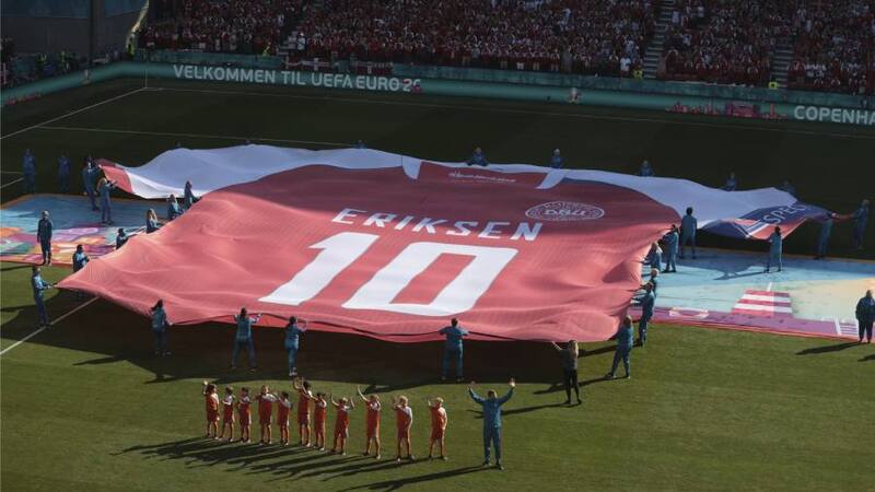 Además, en la salida de los equipos, se desplegaron dos camisetas gigantes, una de ellas, la de Dinamarca, estaba personalizada con el número 10 y con el apellido de Eriksen.