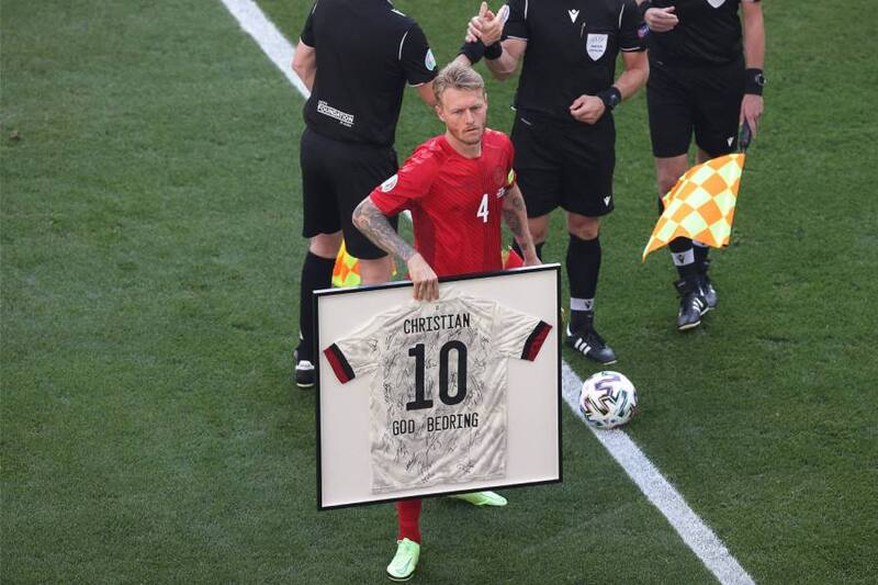 Antes de que comenzara el partido, el plantel belga, que tiene a Romelu Lukaku como compañero de Eriksen en el Inter, le entregó a la delegación de Dinamarca una camiseta con el número 10 autografiada por todo los jugadores.