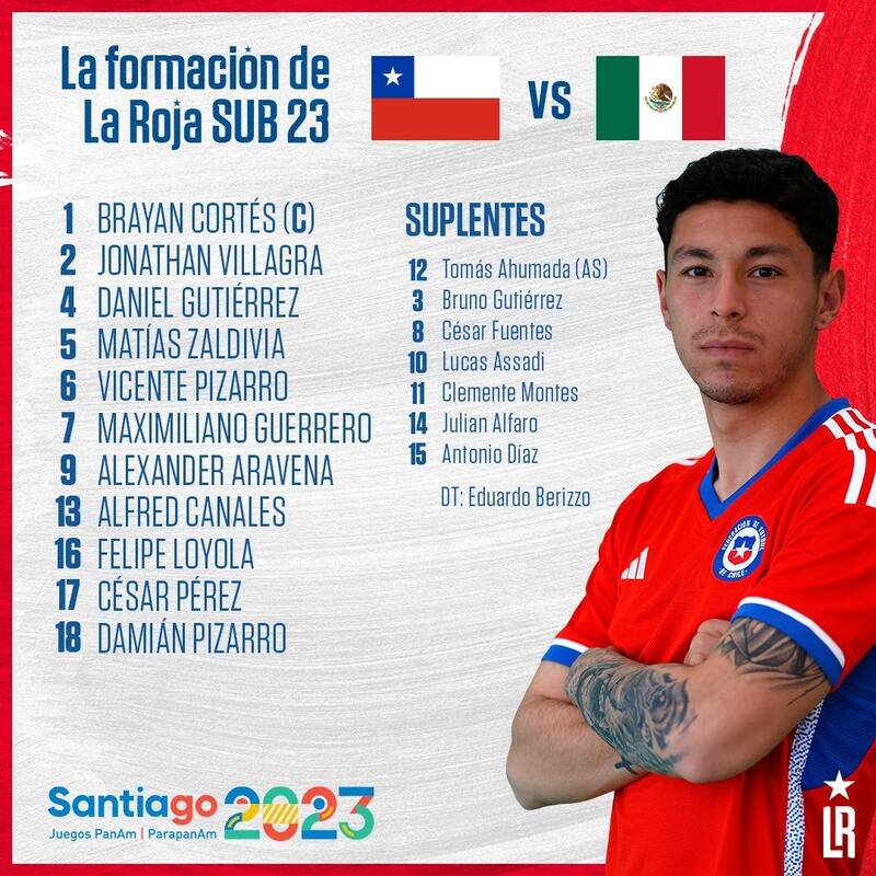 El estratega utilizará a dos de los jugadores mayores de 23 años a los que convocó: Brayan Cortés y Matías Zaldivia. En el mediocampo, prescindió del colocolino César Fuentes, el otro futbolista que excedía el límite, aunque formaba parte de la excepción autorizada por las bases del certamen.
