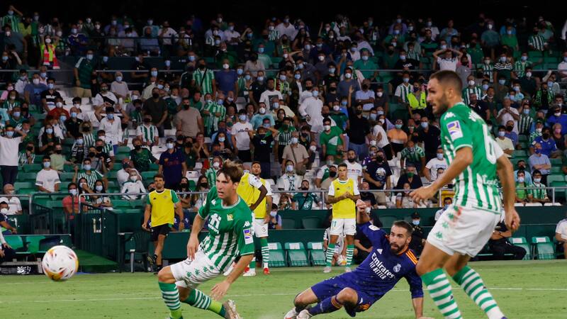 El cuadro capitalino comenzó el partido a buen ritmo. Y aunque Vinicius Junior y Karim Benzema inquietaron a la última línea bética, la primera ocasión clara fue del galo Nabil Fekir, quien obligó a una gran tapada del meta Thibaut Courtois, tras un tiro libre sorpresivo cuando se jugaban los 11 minutos.