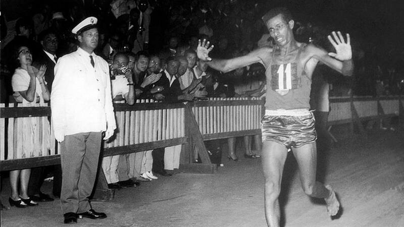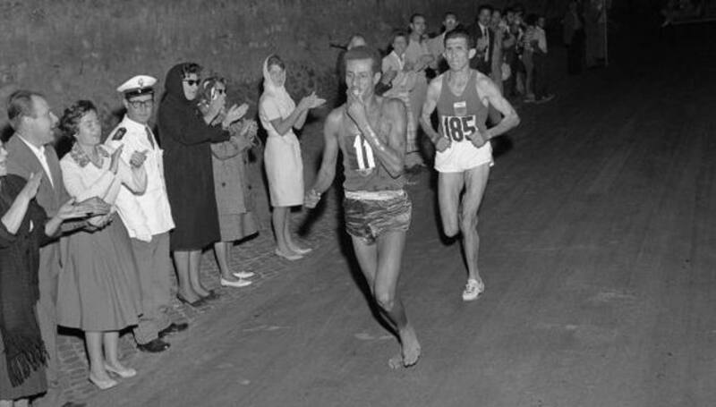 Abebe Bikila sorprendió al mundo en los Juegos Olímpicos de Roma 1960, luego de ganar descalzo la maratón. Una ampolla afectó uno de los pies del etíope, por lo que este decidió competir sin zapatillas, debido a las molestias que estas le causaban al rozarle en la zona afectada. A pies descubiertos, terminó la carrera en 2 horas, 15 minutos y 16 segundos, consiguiendo, además, una marca mundial en ese entonces. Repitió la presea dorada cuatro años después, en Tokio.