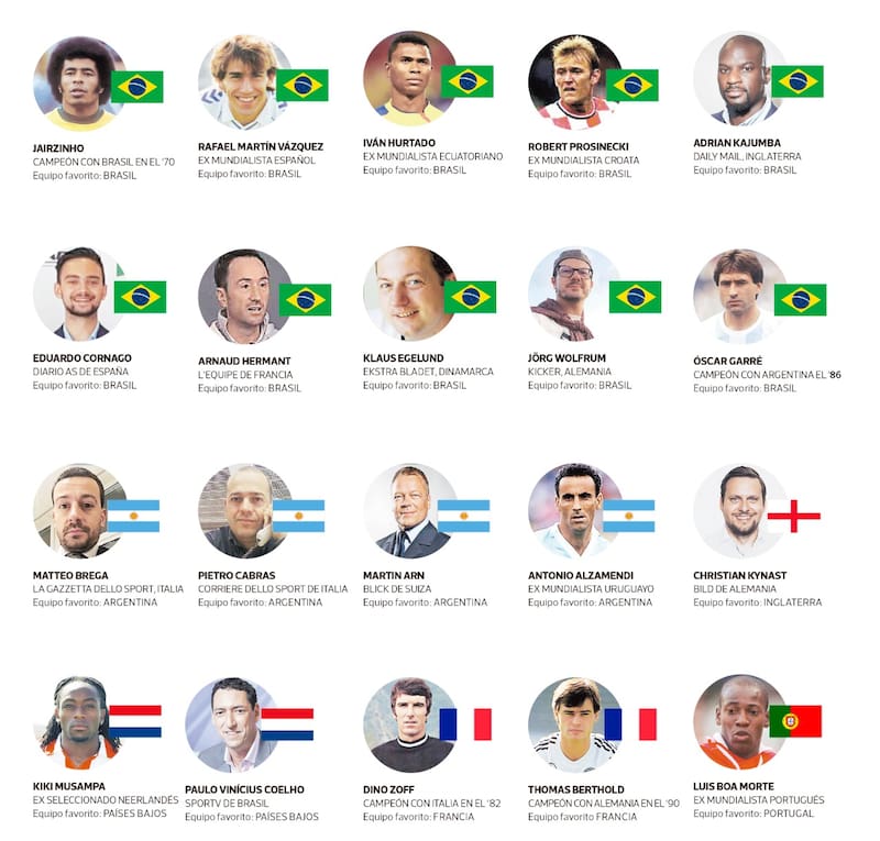 La Tercera entrevistó a 20 especialistas, 10 exjugadores mundialistas y la misma cantidad de periodistas deportivos de diferentes países, quienes en su mayoría prefirieron al Scratch. Argentina fue la segunda más votada, antes de Francia y Países Bajos. Cuatro excampeones históricos: el italiano Dino Zoff, el brasileño Jairzinho, el alemán Thomas Berthold y el argentino Óscar Garré exponen sus razones.