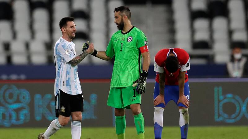 El portero de Chile se detiene en el tiro libre de Lionel Messi, que significó el gol argentino. Un desafío que, esta vez, no consiguió ganar. “Messi tiene una pegada que no tiene todo el mundo, una precisión distinta al resto. Hoy me tocó sufrir. El fútbol es así. Uno disfruta cuando enfrenta a los mejores jugadores, que te ponen la cosas difíciles Uno siempre espera ganar ante una selección con la cual nos conocemos mucho. Es una buena satisfacción el encuentro...”, resume.