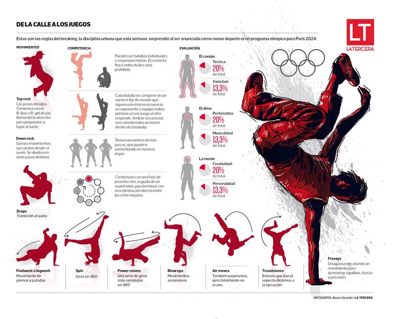 La inclusión del breaking en el programa olímpico abrirá muchas puertas para su desarrollo en el mundo. En Chile, por ahora, comienzan a formar los cimientos de una federación que impulse un deporte que comenzó en las calles de Nueva York como una forma de expresión, pero que con los años tomó un vuelo insospechado.