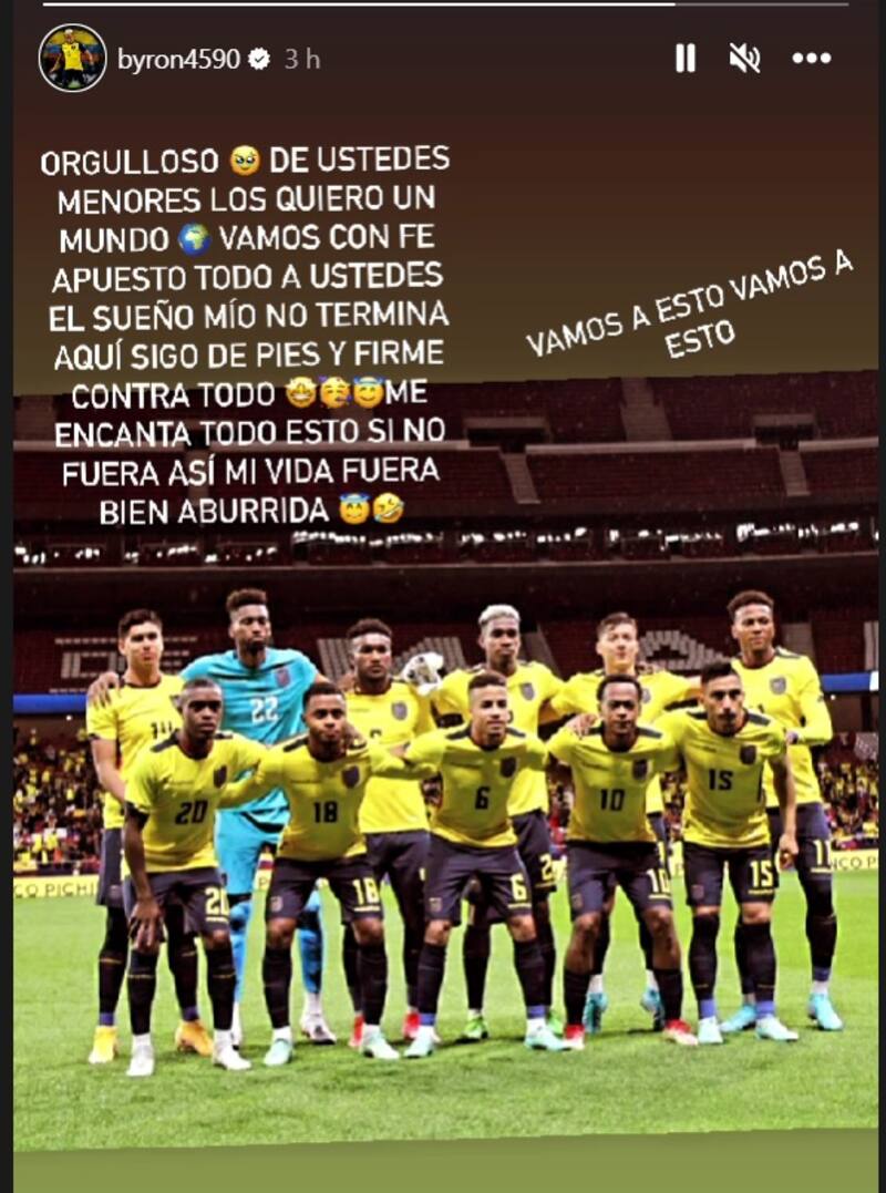 El seleccionado ecuatoriano, a quien la federación decidió bajar de la lista de viajeros a Qatar ante el riesgo de nuevas sanciones, se manifiesta en su cuenta en Instagram. Motiva a sus compañeros e intenta reflejar firmeza.