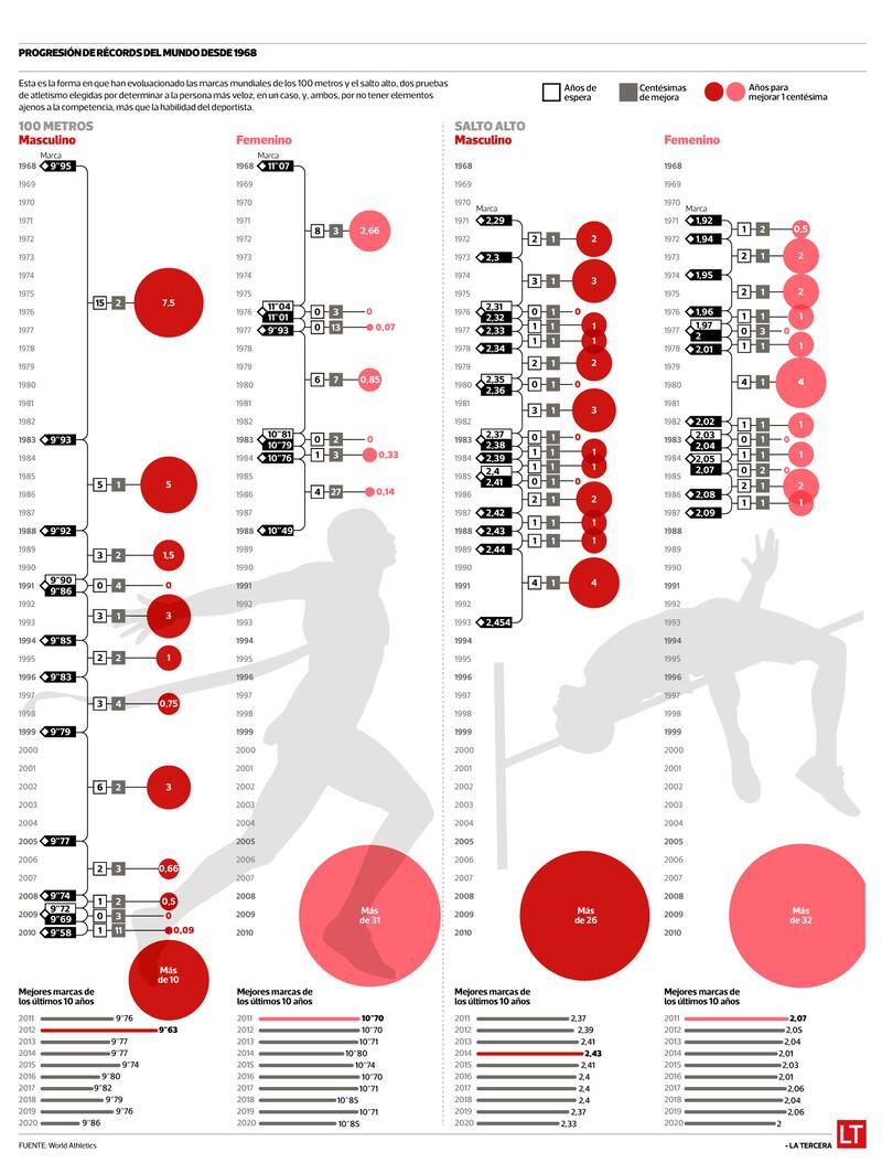 Pero más allá de la evolución del hombre, las ayudas externas vienen a marcar la pauta en el rumbo que tomarán los nuevos récords. “Hay que pensar que las marcas femeninas en la velocidad están congeladas desde hace casi cuatro décadas. No puedo acusar a nadie, pero claramente hay muchas dudas en torno a esos récords, obtenidos por Estados Unidos y la RDA”, asegura San José. Eso, sin contar las ayudas tecnológicas que se están dando, como zapatos con placas de fibra de carbono para aumentar el rechazo en cada zancada.