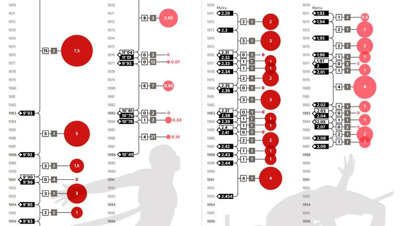 Y casi lo consigue. Un año después cruzó la meta del rekortán de Berlín en 9″58, fijando un récord hasta ahora inalcanzable; también en los 200, con 19″19. Y desde entonces, cada vez que alguien se acerca a la marca, la pregunta sobre cuál es el límite reaparece. Parece ser que en las pruebas de velocidad de atletismo el margen de mejora ya es muy poco. Y el límite parece fisiológico más que técnico.