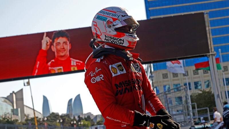 El piloto de Ferrari vuelve a ser el más rápido en los clasificatorios por segunda carrera consecutiva. Aprovechó del rebufo y la suspensión de la Q3 para largar primero en Azerbaiyán. Hamilton arrancará segundo y Verstappen tercero.