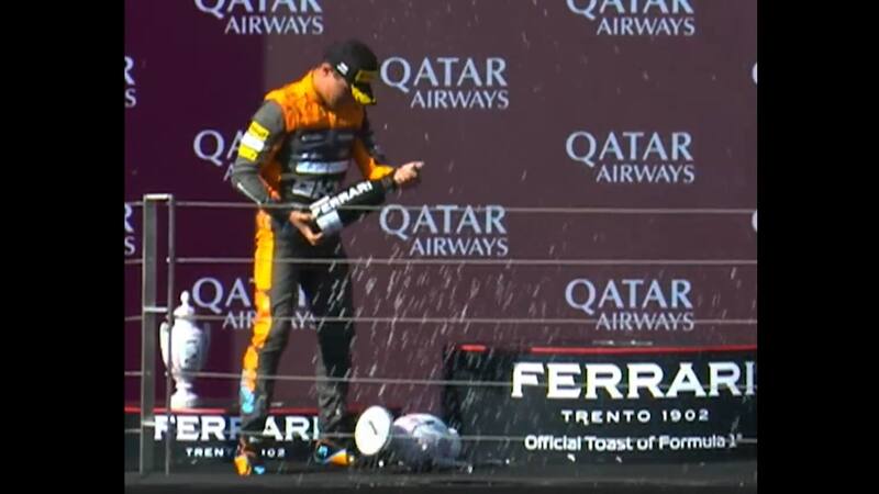 Chascarro en la Fórmula 1: Lando Norris rompe el trofeo de Max Verstappen mientras celebra en el podio