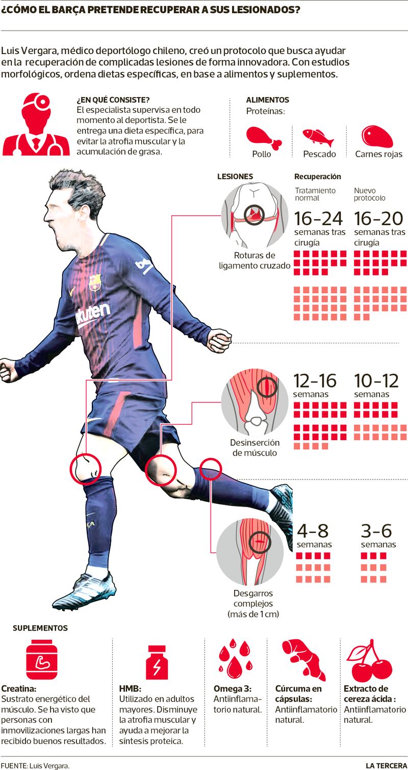 El arribo de Arturo Vidal al club azulgrana ha generado un revuelo. Pero antes, otro compatriota también lo había conseguido. No es futbolista. Luis Vergara (35), médico deportólogo nacional, llegó a La Masía para aportar con un revolucionario protocolo que promete reducir considerablemente el tiempo de recuperación de los lesionados en función de pautas alimentarias.