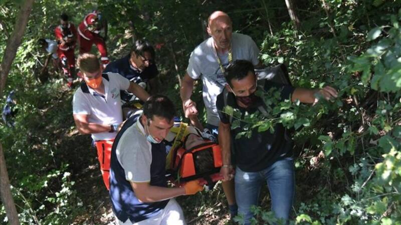 Según los reportes de la televisión italiana el corredor no perdió el conocimiento y fue trasladado a un hospital para evaluar su condición.