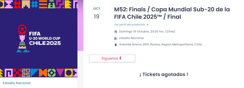 El certamen planterio juvenil generó una gran expectación y una amplia demanda de boletos. El Estadio Nacioal estará repleto para la definición entre Argentina y Marruecos. Eso sí, aún quedan tickets para el partido por el tercer puesto entre Colombia y Francia.