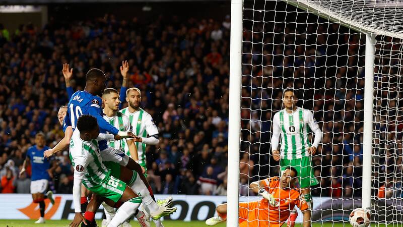 Si bien fue el Betis el que llevó el peso del juego durante el primer tiempo, fue el Rangers el que tuvo la ocasión más clara, ocasionando la primera gran tapada de Claudio Bravo. En cuatro minutos, el 1 de los andaluces tapó un remate bajo de Matondo, evitando una desventaja tempranera. Sucedido esto, fue la visita la que tomó el control del balón.
