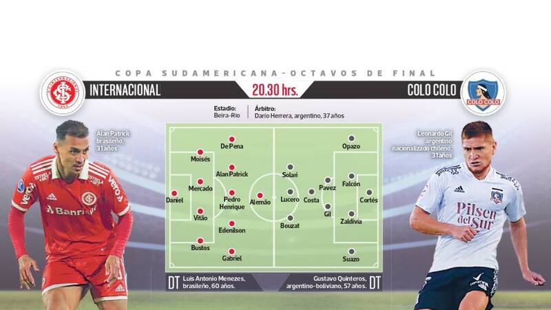 Colo Colo busca los cuartos de final de la Copa Sudamericana. Los albos adelantaron buena parte del trabajo en el estadio Monumental. Los goles de Juan Martín Lucero y Pablo Solari, que estructuraron el 2-0 en Macul, le dan una ventaja considerable de cara a la revancha frente a Internacional de Porto Alegre. Sin embargo, ni Gustavo Quinteros ni sus dirigidos pueden darle un carácter de decisivo a esa ventaja. El duelo de hoy en Beira-Río volverá a poner a prueba la capacidad del equipo albo que al menos en su casa fue capaz de desarrollar una de las presentaciones más sólidas de la temporada y de vencer a una escuadra que sigue luciendo antecedentes inquietantes: figura en el quinto puesto del Brasileirao, con 25 unidades, cuatro menos que el líder, Palmeiras.