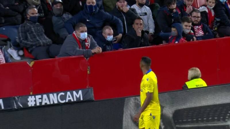 Cuando abandonó la cancha tras ser sustituido,Carlos Akapo captó al hincha que lo insultaba y lo recriminó. Los clubes condenaron el hecho y LaLiga indicó que llevará el caso a la Fiscalía.