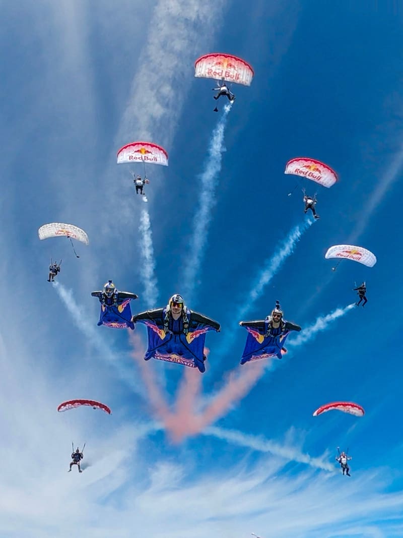 Los chilenos Sebastián "Ardilla" Álvarez y Víctor "Bicho" Carrera fueron parte de este espectacular vuelo, que quedó registrado en un increíble video que desafía lo posible. El desafío consideraba diferentes especialidades aéreas como wingsuit, paracaidismo, ingenieros de drones, helicópteros, entre otros.