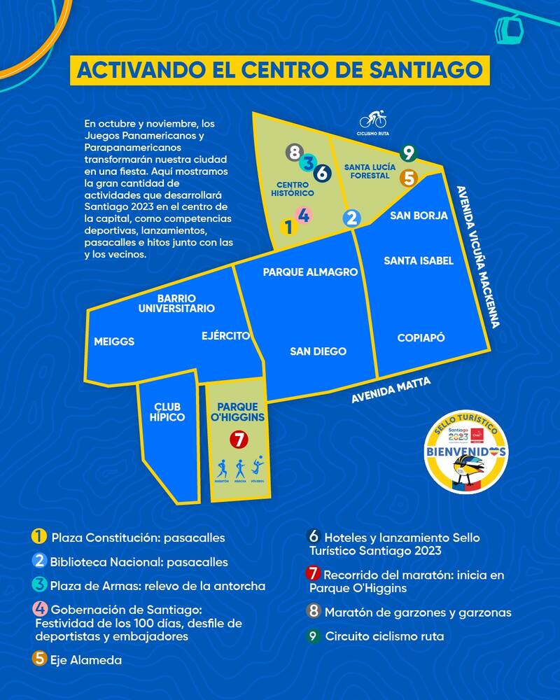 A poco más de tres meses para el inicio de Santiago 2023, la corporación a cargo del megaevento trabaja en las activaciones que desarrollarán durante los Juegos Panamericanos y Parapanamericanos, en octubre y noviembre próximo. En ese sentido, el centro de la capital aparece como un eje fundamental para atraer turismo durante la cita.