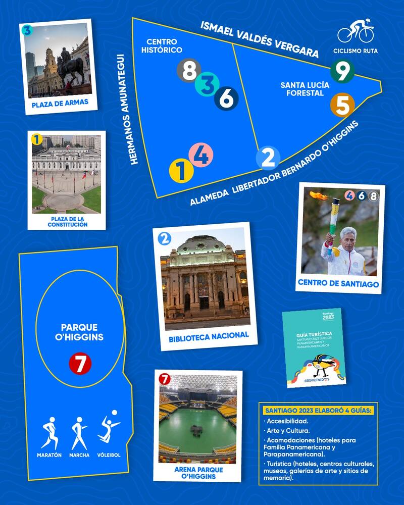 En ese sentido, se trabajó en el diseño de guías. “Santiago 2023 es una oportunidad histórica para presentar nuestro país y nuestra historia. Para ello, hemos desarrollado cuatro guías que ayudarán a los visitantes de acuerdo con su interés: turismo, cultura, acomodaciones (hoteles para la familia panamericana y parapanamericana) y una especial sobre accesibilidad”, anticipa.