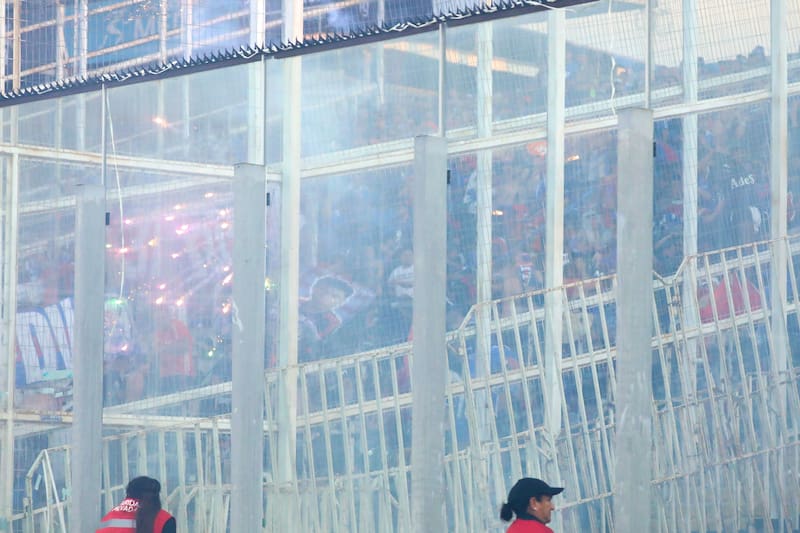 Luego añadió que “al minuto 88, desde el sector Caupolicán, se encienden bengalas y se lanzan fuegos artificiales dirigidos hacia la tribuna Magallanes, donde se encontraba el público visitante”.