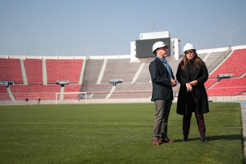 Durante la mañana, se realizó un recorrido por el perímetro y el interior del coliseo central del Estadio Nacional, en el que también participaron la subsecretaria Antonia Illanes y la Jefa de la División de Infraestructura Claudia Silva, la misma arquitecta que en su momento estuvo a cargo del postergado plan de remodelación del Monumental.