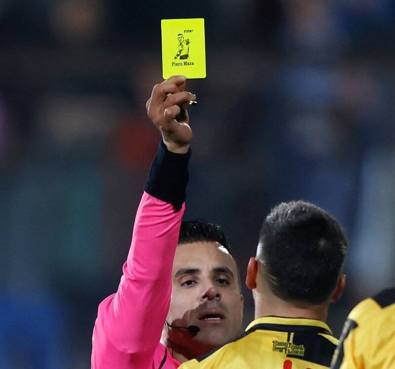 El árbitro del partido sorprendió con una particular personalización de la cartulina amarilla este domingo, la cual fue mostrada en nueve ocasiones.