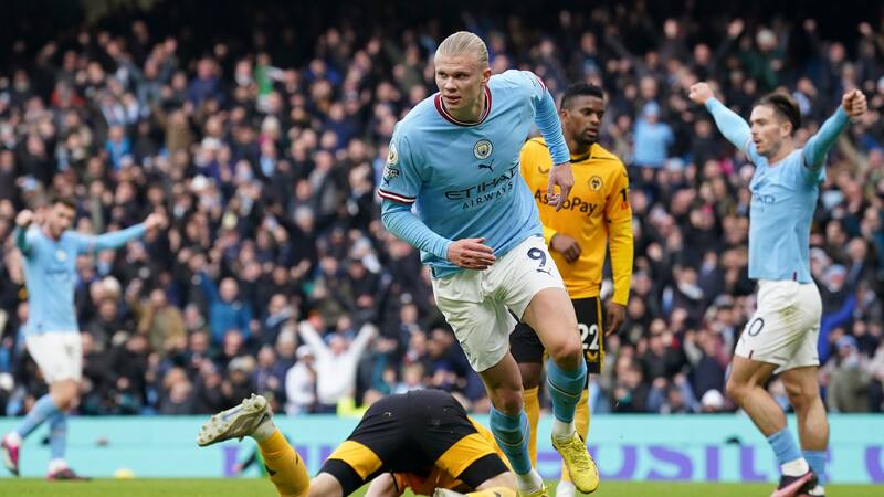 Con triplete de Haaland en 14 minutos: Manchester City golea a Wolverhampton y se mantiene a la caza de Arsenal