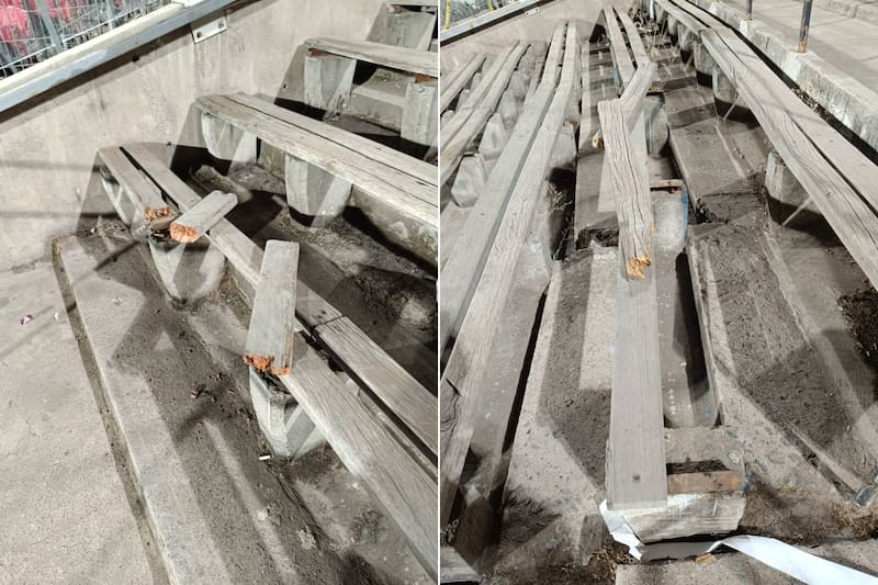 Ahora por suerte encontramos dentro de las bodegas del estadio algunos tablones que pueden servir para reemplazo. Vamos a verlos hoy para ver si sirven como reemplazo.