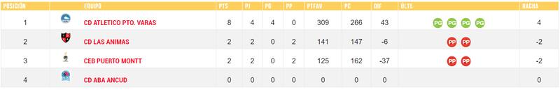 Cabe mencionar que el duelo entre ABA Ancud y CEB Puerto Montt, que correspondía también a la Zona C, será reprogramado luego de que dos jugadores del cuadro chilote arrojaran positivo por coronavirus.
