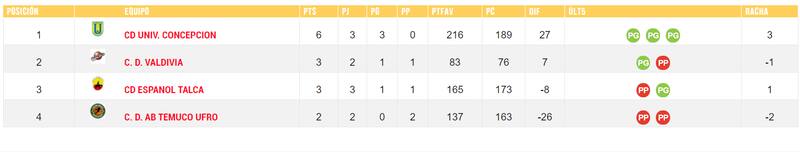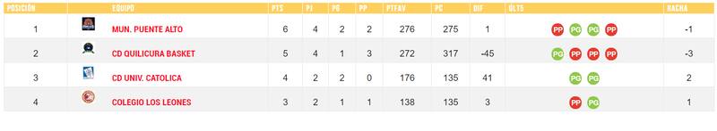 En otros resultados, por la Zona A, Municipal Puento Alto derrotó el sábado por 69-67 a Colegio Los Leones. El domingo, sin embargo, el conjunto felino hizo valer la localía y se impuso por 71-66.