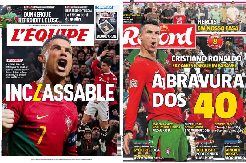 Este miércoles, el laureado y mediático futbolista portugués cumple 40 años. Vigente en el Al Nassr de Arabia Saudita, y mirando de reojo el Mundial 2026 con Portugal, está en carrera para convertirse en el primer jugador en alcanzar las mil anotaciones oficiales. Todo un récord. Eso sí, para eso le faltan 77. Importantes diarios deportivos del mundo, como L'Equipe, Marca y A Bola le dedicaron sus portadas al astro luso, que hace unos días se autoproclamó como el mejor jugador de la historia del fútbol.