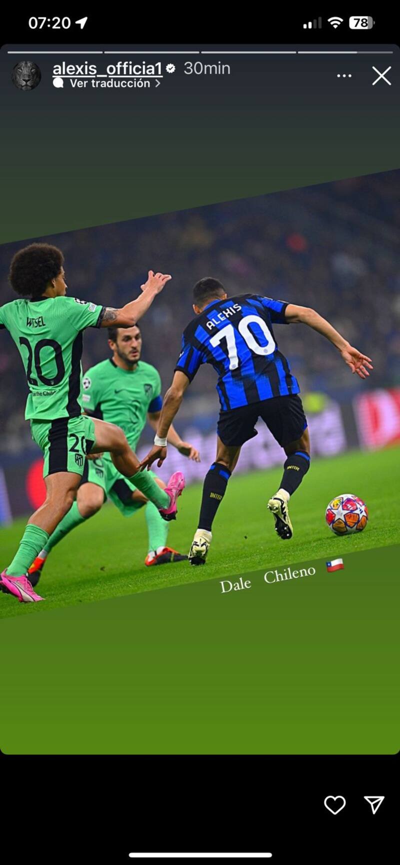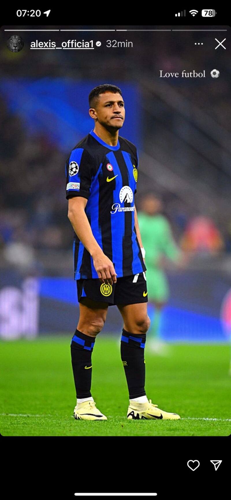 Tras este partido Alexis Sánchez utilizó sus redes sociales para compartir con sus seguidores una llamativa publicación. En las historias de Instagram compartió dos imágenes en las que se le ve durante el duelo. En la primera de ellas acompañó la fotografía con el mensaje “love futbol” y luego otra en la que se le ve disputando un balón con el texto “dale chileno”.