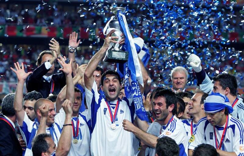 Debe ser una de las sorpresas más grandes del fútbol mundial. Nadie apostaba por el combinado heleno para ser campeón de la Euro organizada en Portugal, pero lo hizo. Quizás no tuvo el fútbol más vistoso, más bien se trató de un elenco especulativo, sin embargo esa estrategia les permitió llegar alto. Luego de salir segundo en el grupo A, clasificaron a cuartos de final. De ahí en adelante, solo un resultado se repitió: 1-0. Eliminaron a Francia y a República Checa, respectivamente, para encontrarse en la final a Portugal. Gracias a un cabezazo de Ángelos Charisteas, el equipo de Otto Rehhagel fue campeón continental por primera vez.