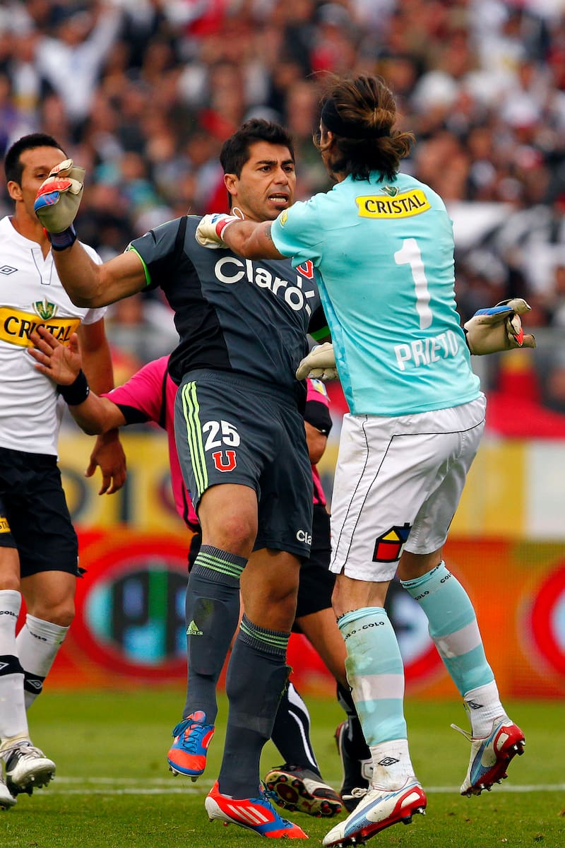 Uno de los nombres que siempre causó polémicas en los Superclásicos fue el de Johnny Herrera. Al finalizar la agónica derrota de la U por la cuenta mínima en el Monumental en 2012, con un golazo de Carlos Muñoz, el arquero de Colo Colo Francisco Prieto realizó un polémico gesto a la barra azul, lo que provocó la furia del meta estudiantil. Se dieron de pechazos y debieron ser separados por el resto de sus compañeros.