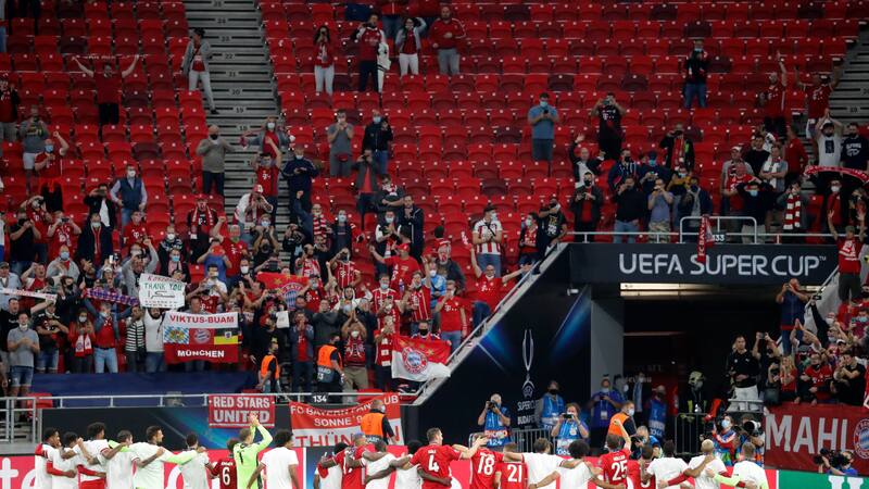Fueron 15 mil personas las que pudieron ver el encuentro entre bávaros y andaluces. La UEFA, que autorizó solo un tercio de la capacidad total del recinto, de 68 mil espectadores, consideró a la Supercopa como una prueba de seguridad antes de que se abran los estadios al público en el futuro (las definiciones de la Champions y la Europa League fueron en burbujas sanitarias en sedes únicas, todo a puertas cerradas). La ciudad comenzó a cerrar grandes zonas alrededor del estadio, no obstante igual aparecieron fanáticos en el área céntrica. Eso sí, sin turistas, porque el aislamiento ha restringido la cantidad de visitantes a la capital húngara.