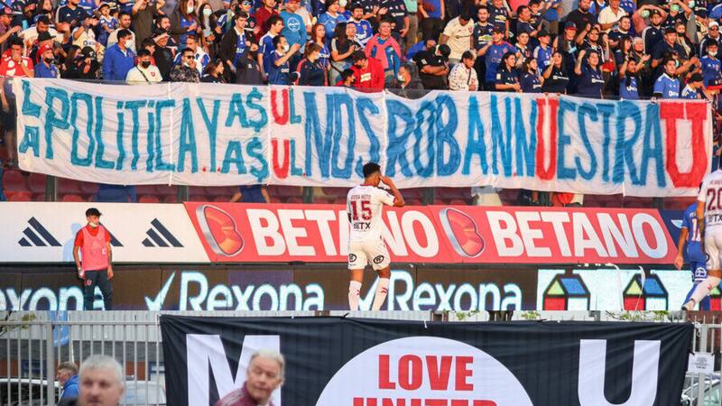 El ejemplo más palpable de esto hoy, en el campeonato local, sucede con Universidad de Chile. La delicada situación institucional y deportiva del cuadro laico ha sido caldo de cultivo para que los lienzos en contra de Azul Azul afloraran en los últimos partidos como local. Ante Palestino y La Serena, se hizo notoria la presencia de mensajes alusivos a la concesionaria, como responsable del presente del equipo, lejos de la vanguardia consecutivamente. En el duelo del sábado 7 de mayo, ante los papayeros, lienzos como “A$UL A$UL no es la U” o “Dirigentes ineptos” se notaban claramente en la Tribuna Andes del estadio Santa Laura. Incluso, el árbitro Cristián Garay lo consignó en el informe del partido, además de otros elementos como bombas de estruendo y uso del láser.