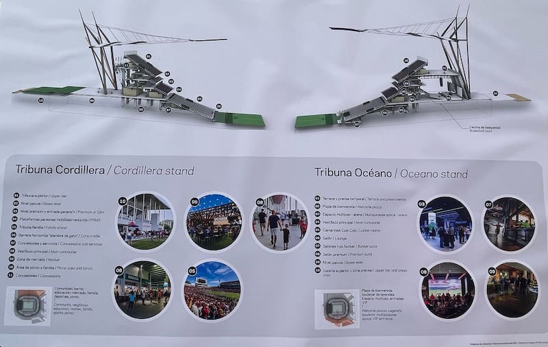 De hecho, parte de las láminas que se exhibieron el sábado aluden directamente al concepto isóptica. “Justamente eso es lo que se busca. Que las sesenta y algo mil personas que va a venir tengan una visión completa de la cancha. Hoy nos encontramos con que en más de algún lugar no se ve lo suficientemente bien y eso no está bien. Eso hay que trabajarlo y mejorarlo”, admite Mayne-Nicholls. La definición es una de las que motivó la modernización del escenario.