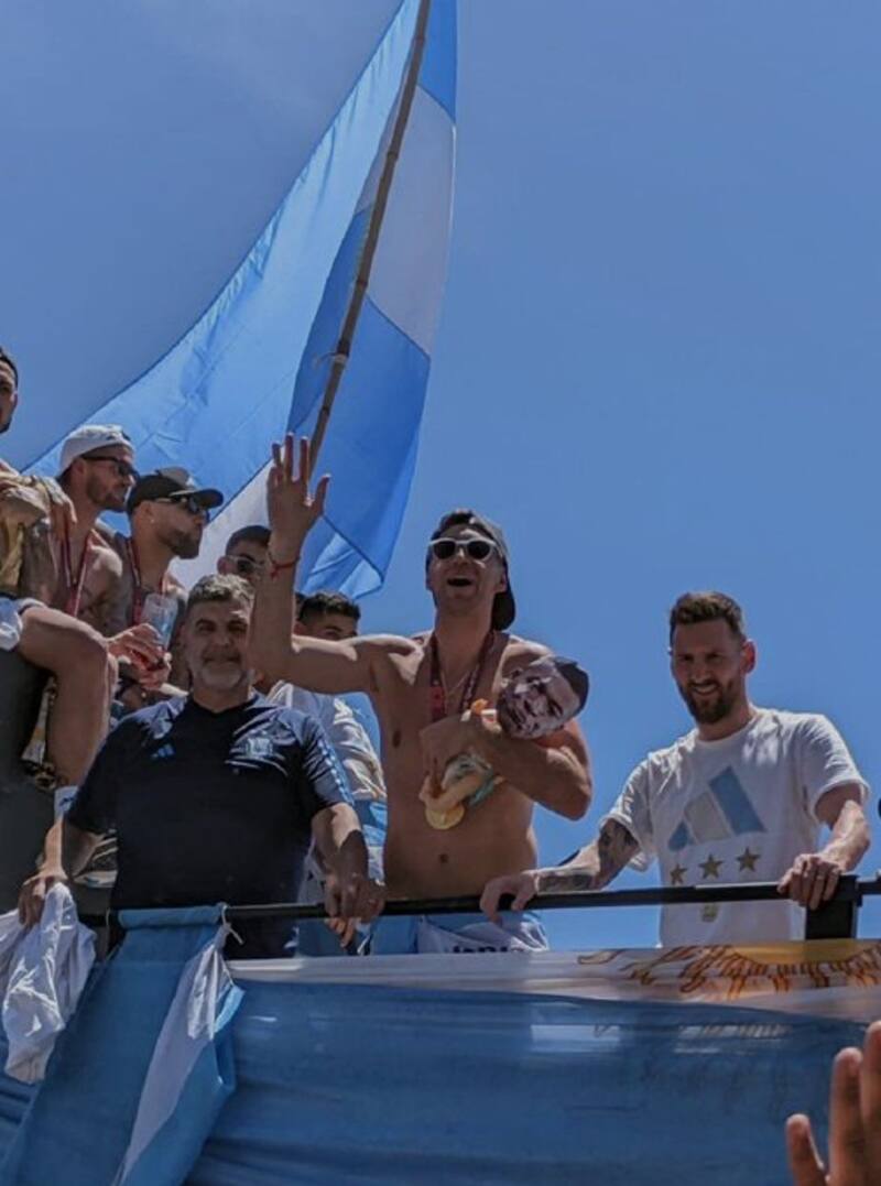 Posteriormente, tocó el turno de la siguiente polémica que protagonizó. Cuando el plantel volvió a Argentina para festejar la obtención del campeonato, se captó al Dibu con un muñeco de bebé en brazos, el cual tenía la cara del delantero francés.