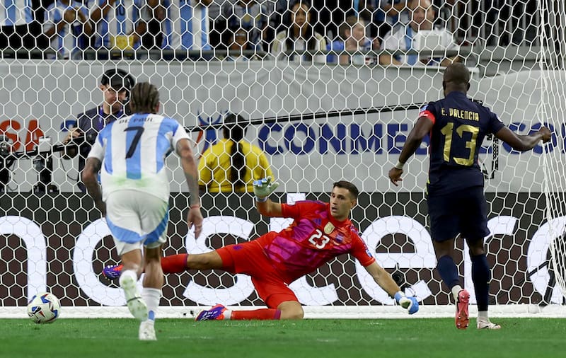 Desde los 12 pasos, el salvador fue, otra vez, Emiliano Martínez. El provocador meta del Aston Villa tapó dos remates (a Mena y Minda), siendo fundamental para la clasificación de su país. Y salvó a Lionel Messi, porque el 10 falló su primer lanzamiento. La picó al estilo de Zinedine Zidane en la final del Mundial 2006 y el balón dio en el travesaño. El rictus del rosarino lo decía todo. Al final, la cuenta quedó 4-2 (el último fue anotado por Otamendi) y el campeón defensor sigue en carrera.