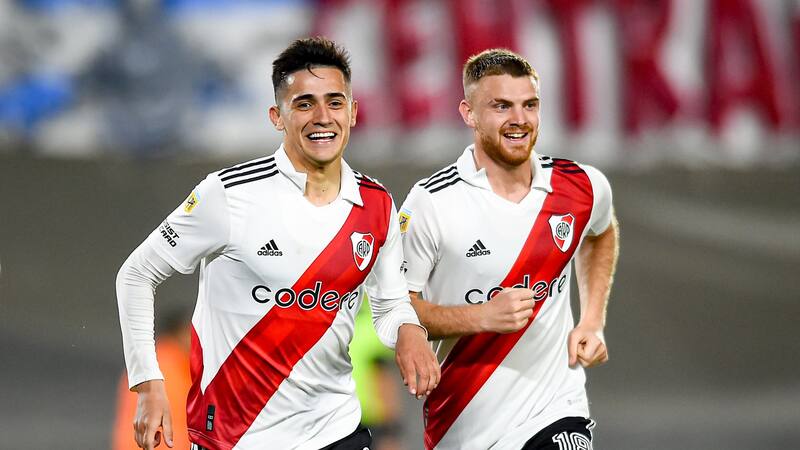Dos goles en tres minutos: Pablo Solari celebra sus primeros tantos con la camiseta de River
