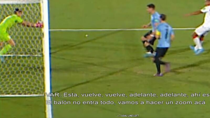 “Esta, vuelve, vuelve, adelante, adelante, ahí está. El balón no entra todo”, concluyen en el VAR mientras continúan revisando las imágenes.