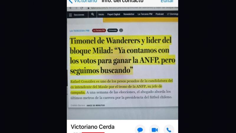 No fue la única reacción. El vicepresidente de Huachipato, Victoriano Cerda, puso como avatar en su cuenta de Whatsapp la foto de una pantallazo con el título de la entrevista, subrayado en amarillo.