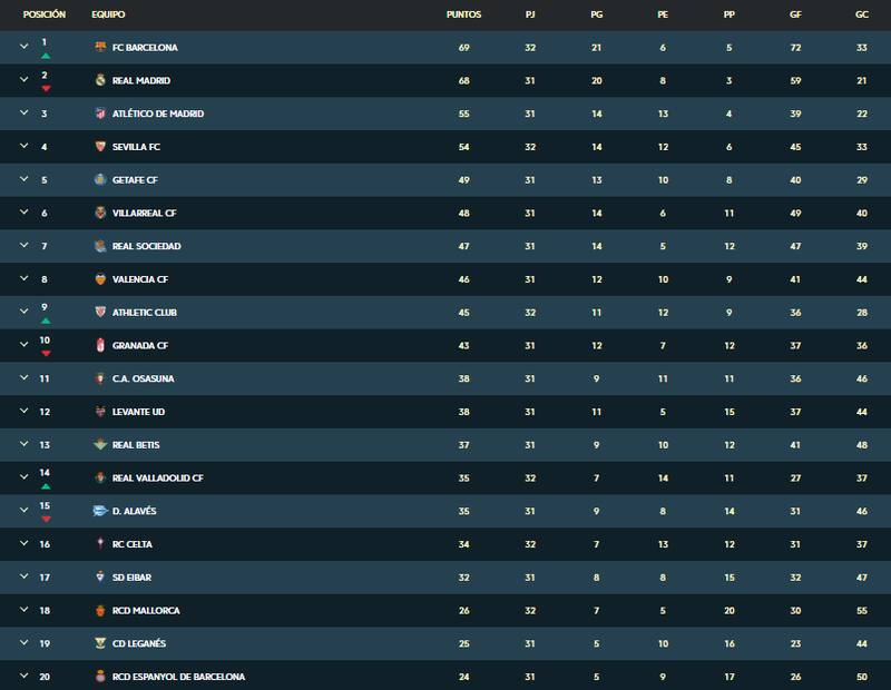 Con este resultado, el Barcelona trepó hasta el primer lugar de La Liga y aguarda por lo que haga este domingo el Madrid. La próxima fecha, recibirán en el Camp Nou al Atlético Madrid en un duelo que está programado para el martes 30 de junio, desde las 16.00 horas de Chile.