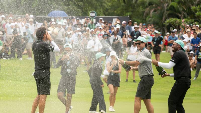 Joaquín Niemann celebra a lo grande. Este domingo, por la cuarta fecha del LIV Golf, el chileno consiguió quedarse con el título en Singapur tras cerrar una espectacular última ronda en la competencia en territorio oceánico. El oriundo de Talagante brilló en la isla Sentosa.