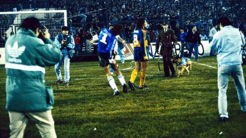 El equipo argentino reclamó una posición de adelanto y de un momento a otro empezó una pelea con algunos reporteros gráficos, la que se extendió hacia toda una cancha que tuvo mucha gente de más. La fuerza policial debió ingresar para calmar a los jugadores trasandinos, tal como un eufórico Carlos Navarro Montoya, quien recibió la famosa mordida del perro Ron, un pastor alemán de Carabineros que detectó como rival al portero.