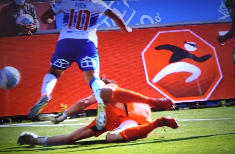 Cuando los cruzados vencían por la cuenta mínima a los itálicos, José Devecchi derribó en el área a Edson Puch con un leve toque, luego de tocar el balón. El juez del cotejo, quien ni siquiera recurrió al VAR, sancionó la falta tras la polémica jugada y Luciano Aued anotó el 2-0 transitorio para los de Ariel Holan.