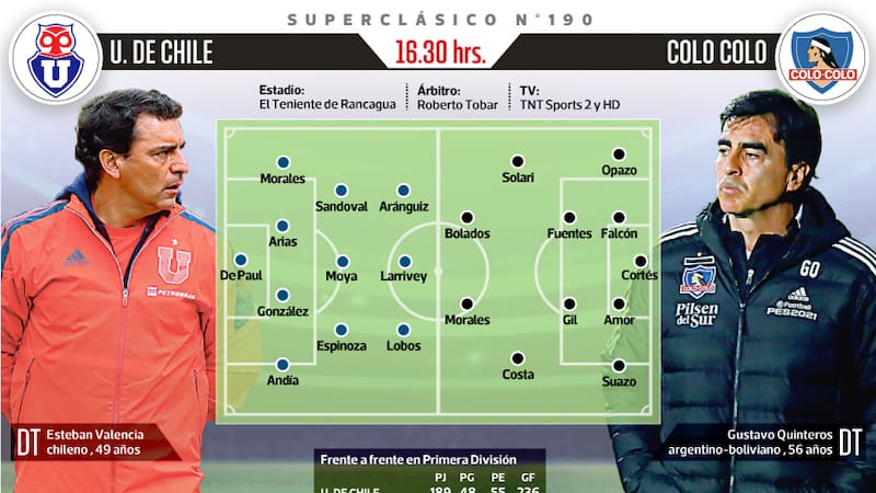 El ahora DT oficial de la U dirige por primera vez ante Colo Colo. Enfrenta al técnico de moda en Chile, invicto ante los azules.