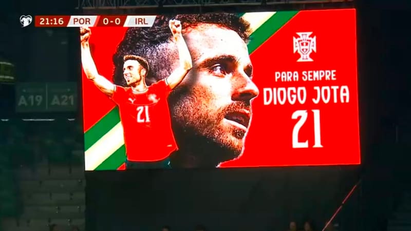 Una emotiva jornada se vivió este sábado en Lisboa. Durante el duelo entre la selección de Portugal e Irlanda, los aficionados lusos realizaron un homenaje a Diogo Jota y su hermano André Silva por las Eliminatorias europeas, el primer duelo que se disputó en tierras lusas desde el accidente que le costó la vida a ambos.