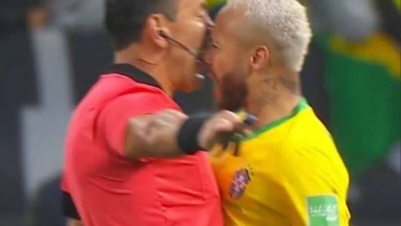 En el minuto 8 del encuentro entre Brasil y Colombia el jugador del PSG le dio un pechazo al juez chileno reclamando una falta que había recibido.
