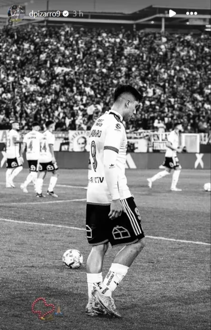 En ese contexto adverso, Pizarro sorprendió con una publicación en Instagram. Ahí se ve una fotografía en blanco y negro con la camiseta de Colo Colo, acompañada por dos emojis, unas manos en posición de oración y un rosario.
