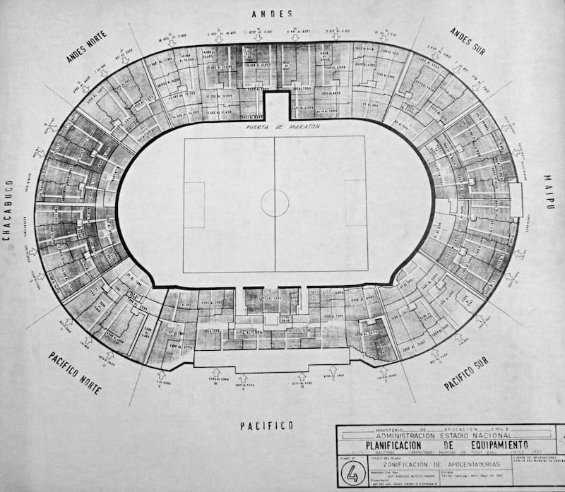 De esa época también es la placa hallada hace algunos años en una de las bodegas del Nacional, la que pese al tiempo transcurrido y del lugar en que se encontraba estaba en perfecto estado de conservación. Otro de los tesoros ocultos presentados a El Deportivo son los planos de remodelación para el Mundial 1962. Ahí se contempló una ampliación a 71.527 espectadores sentados (aunque finalmente se llegó a 80 mil) gracias a la eliminación del velódromo, aunque el detalle más llamativo estaba en el nombre de las tribunas. Por ejemplo, la galería norte se llamaba Chacabuco y la sur Maipú. Tribunas que fueron testigos del mítico tercer lugar alcanzado por el equipo de Fernando Riera, de las finales de Copa Libertadores, los títulos de la U en la Copa Sudamericana 2011 y de la Roja en la Copa América de 2015, además de competencias atléticas, el Mundial de Básquetbol de 1959, la final de la Copa Davis de 1976, las célebres veladas de boxeo de Martín Vargas, grandes conciertos, como el de Rod Stewart en 1989, las visitas del Papa Juan Pablo II y de otros dignatarios o el recordado discurso de Patricio Aylwin en 1990.